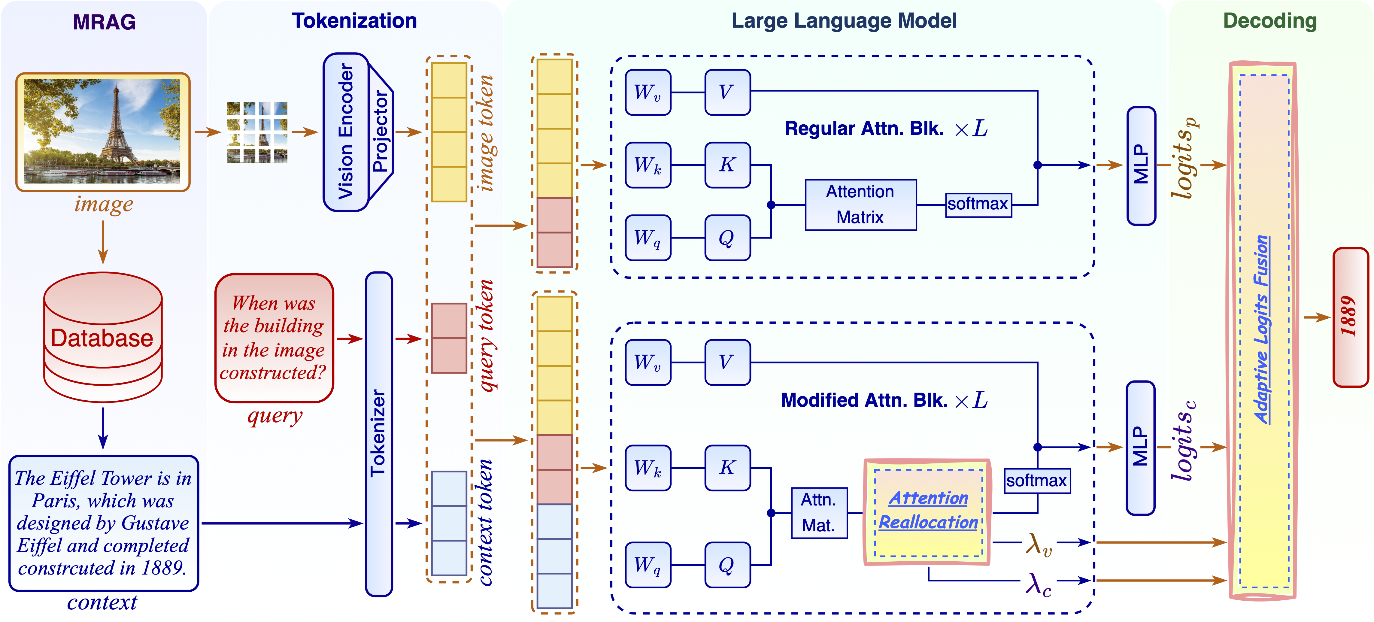 Boosting Knowledge Utilization in Multimodal Large Language Models via Adaptive Logits Fusion and Attention Reallocation